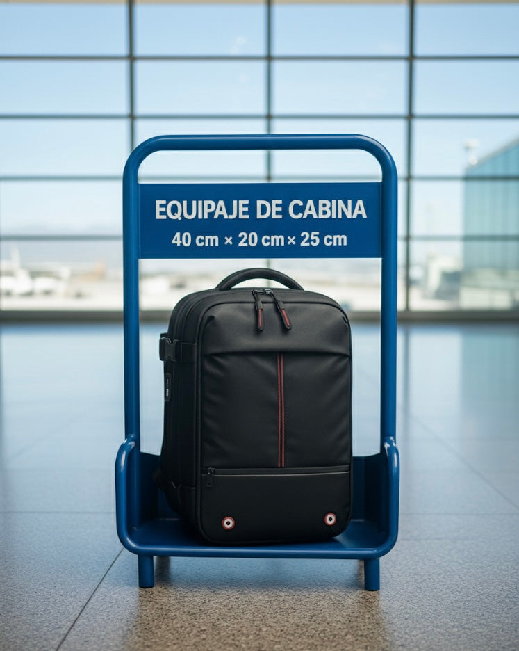 Notre sac à dos est conforme aux dimensions des bagages cabine (40 x 20 x 25 cm), ce qui lui permet de se glisser facilement dans la cabine de tout type d'avion. Il est idéal pour voyager confortablement, sans se soucier des restrictions de taille.